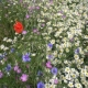 A selection of fruit trees was made, suitable for growing in the north of England, and a wildflower mix was sown in the meadow. This gave colour in the first year through annuals (field poppy, cornflowers, corn marigold and corn cockle) whilst the perennial plants became established, to give colour from the second year onwards.