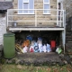 The old steps were rebuilt to make them a feature within the garden and the brick outhouse was repaired, The storage area under the balcony was tidied up and screened with wooden gates.
