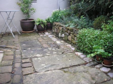 This very small yard is the only garden area of a characterful listed cottage in Langcliffe. Although it is surrounded with buildings and high walls, it receives a surprising amount of sunshine in the summer months and had the potential to be turned into an attractive retreat.