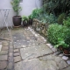 The concrete surface was replaced with a mix of reclaimed stone cobbles, setts and paving flags, which immediately looked as though they had been there for years and is much more in keeping with the old cottage.