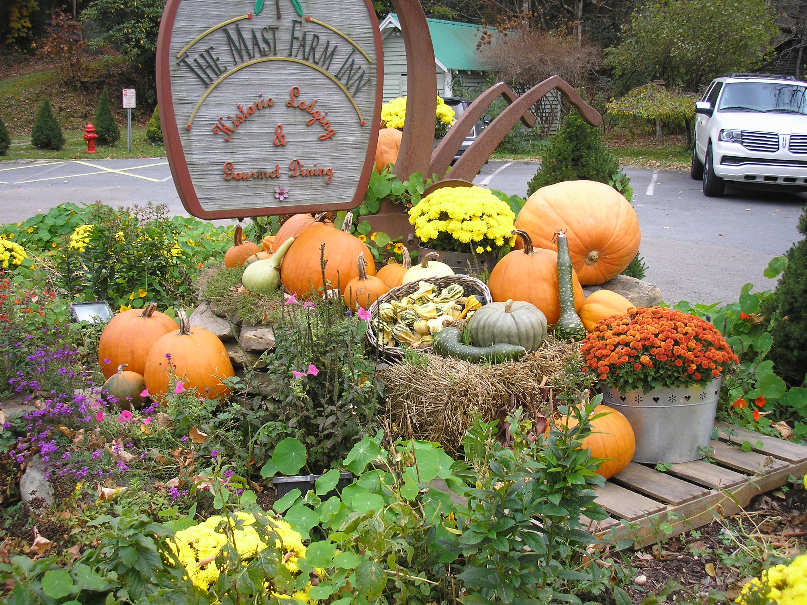 I have just returned from a trip to the Appalachians in North Carolina - the autumn colours were fantastic, as were the displays of pumpkins, other gourds and chrysanthemums everywhere - a real inspiration.